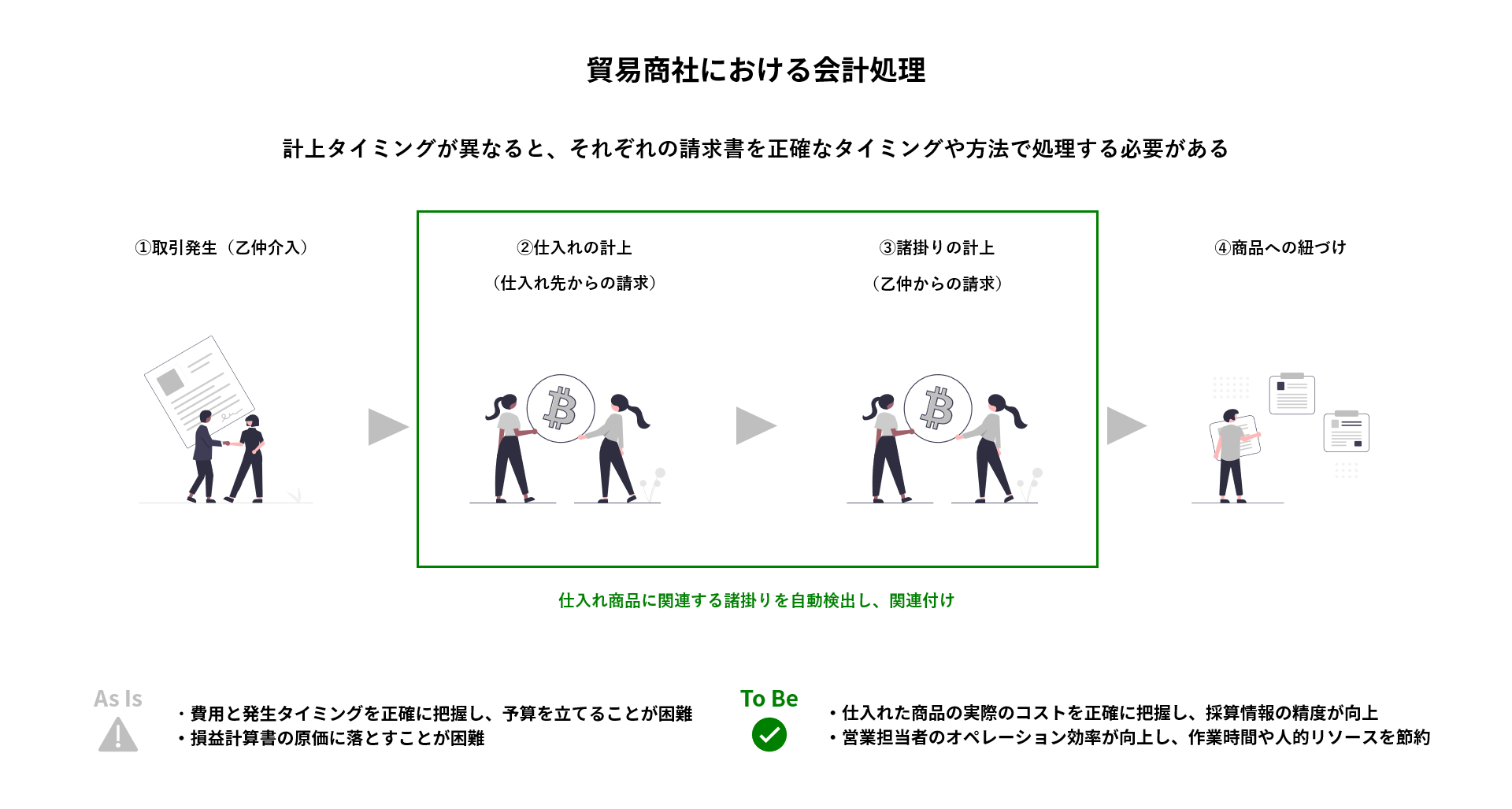 その紐づけを①、②の支払い完了後に行っており、計上が上がってくるタイミングもばらつきがあったため、注文に対する損益計算に遅れが発生し、予算の組み立てに時間がかかるという課題を抱えていました。