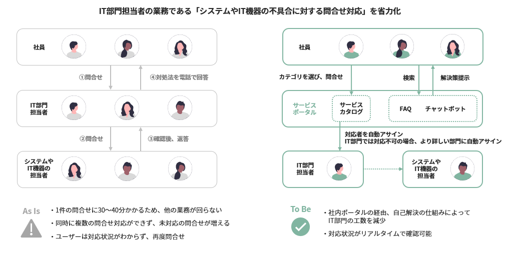 実際にServiceNow社の発表では、ある企業で電話対応の時間が60%減少したという報告もあるそうです。