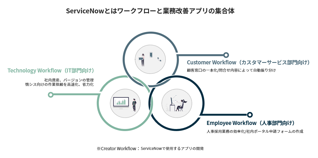 IT部門向けのTechnology Workflow、カスタマーサービス部門向けのCustomer Workflow、