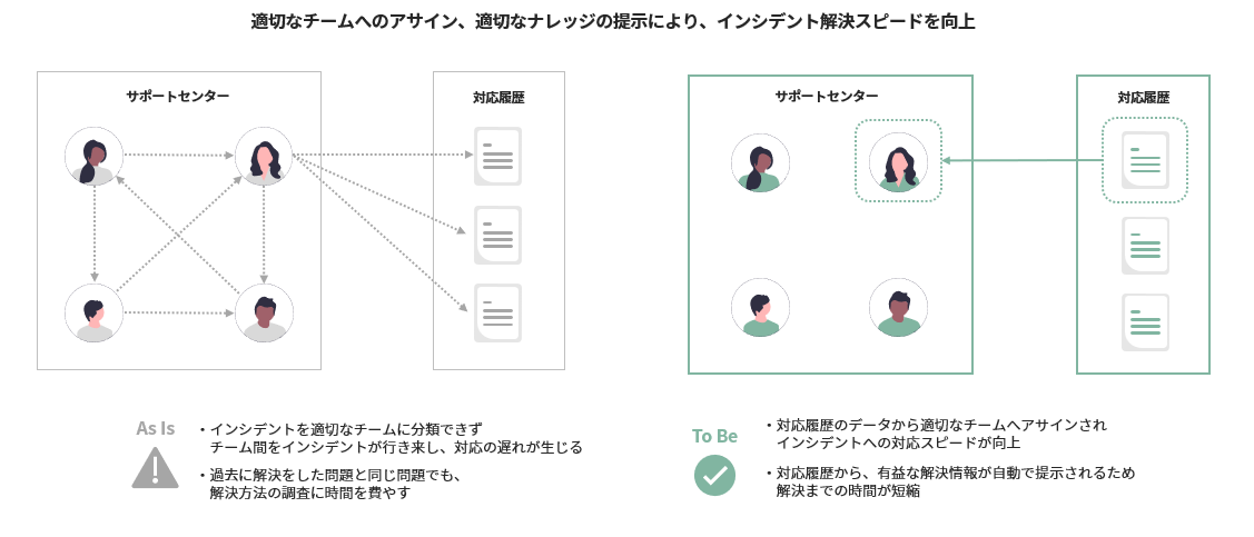また、過去の成功例を基に推奨解決策の提示もしてくれます。