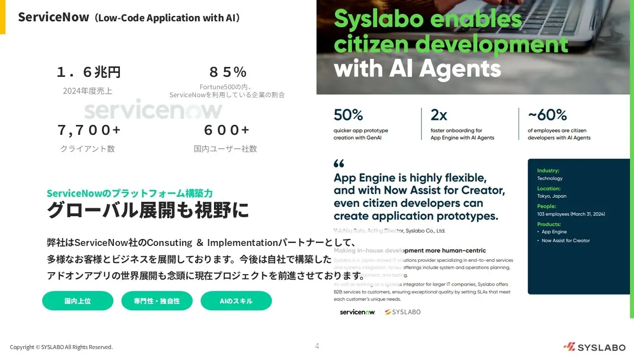 事業内容:業務システム開発、クラウドインフラ支援、ServiceNow導入支援、システム運用保守など
